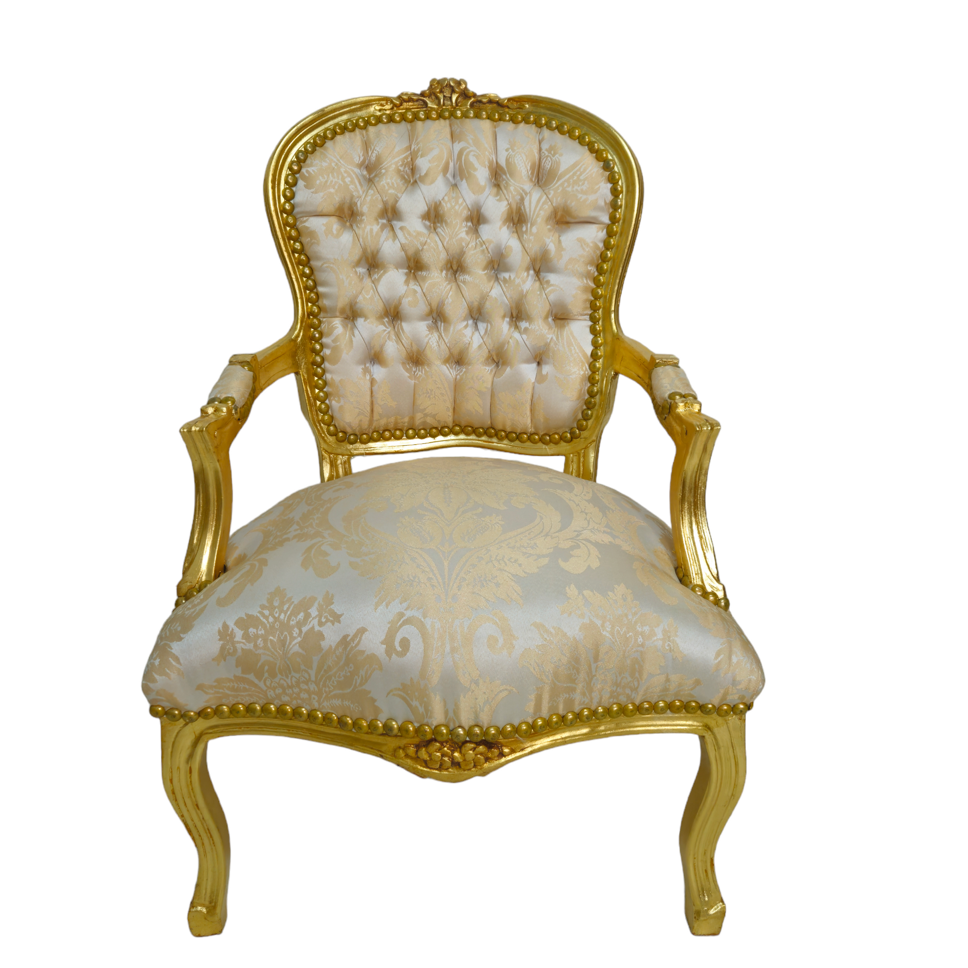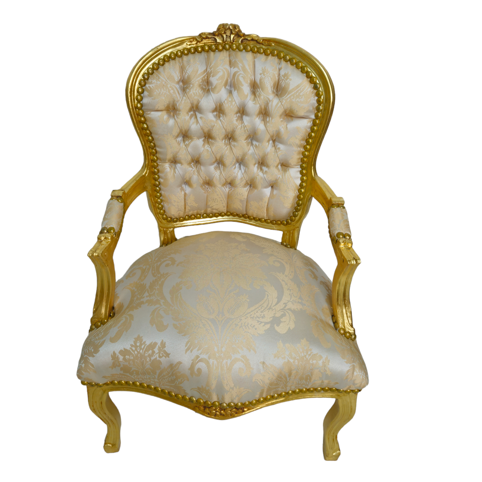 Op zoek naar de perfecte barokke stoel die elegantie en een vleugje luxe toevoegt aan jouw interieur? Ontdek onze Barok stoeltjes, damesstoelen, bijzetstoelen en salonstoelen met een unieke crème gouden bekleding. Deze exclusieve stoelen combineren klassieke barok elementen met een luxueuze touch, dankzij de bekleding in een prachtige gouden stof.