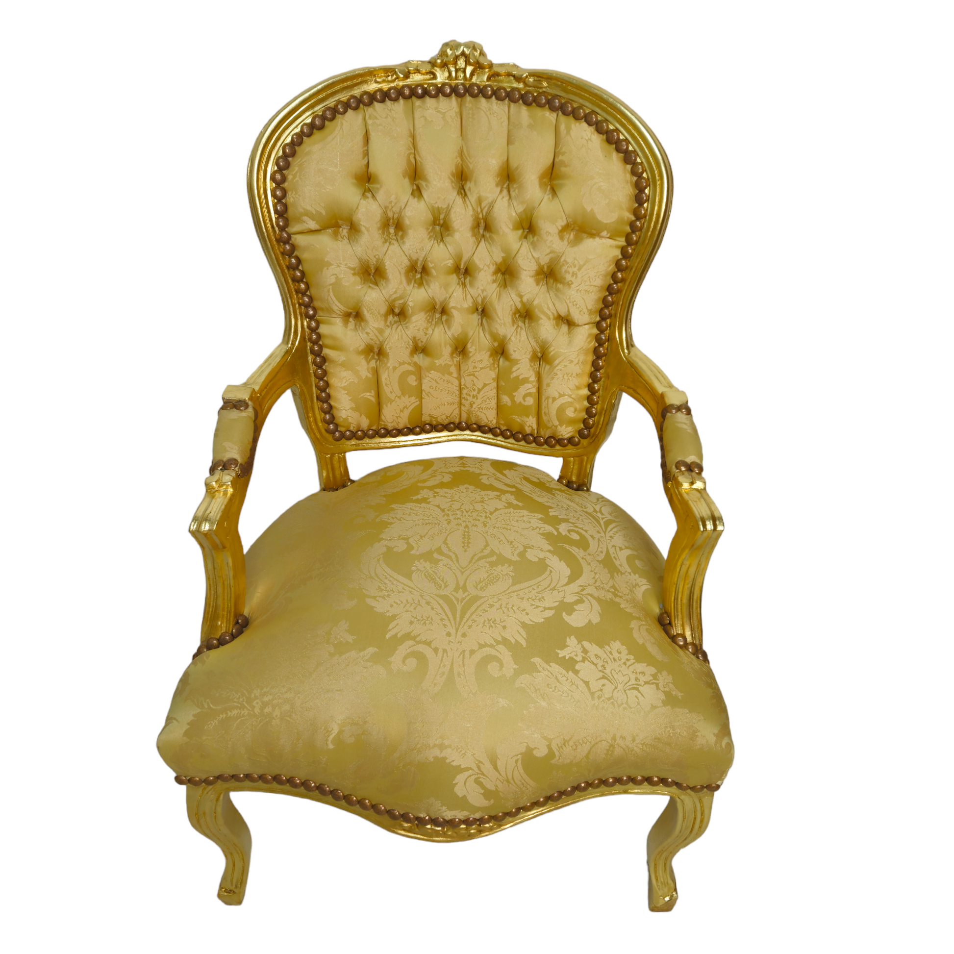 Op zoek naar de perfecte barokke stoel die elegantie en een vleugje luxe toevoegt aan jouw interieur? Ontdek onze Barok stoeltjes, damesstoelen, bijzetstoelen en salonstoelen met een unieke gouden bekleding. Deze exclusieve stoelen combineren klassieke barok elementen met een luxueuze touch, dankzij de bekleding in een prachtige gouden stof.