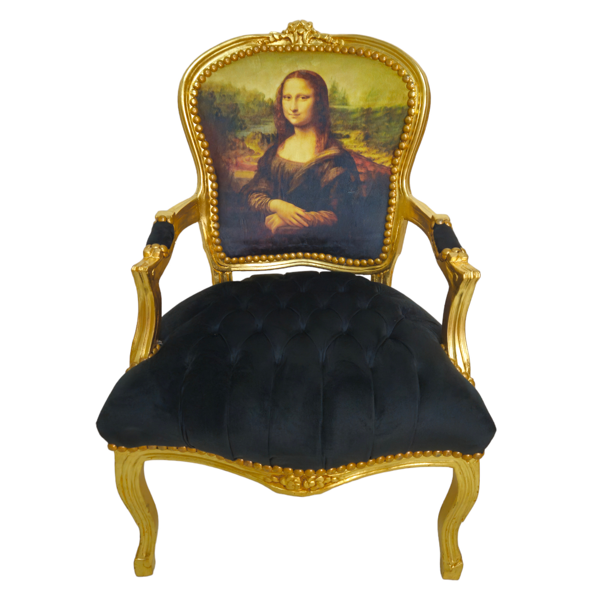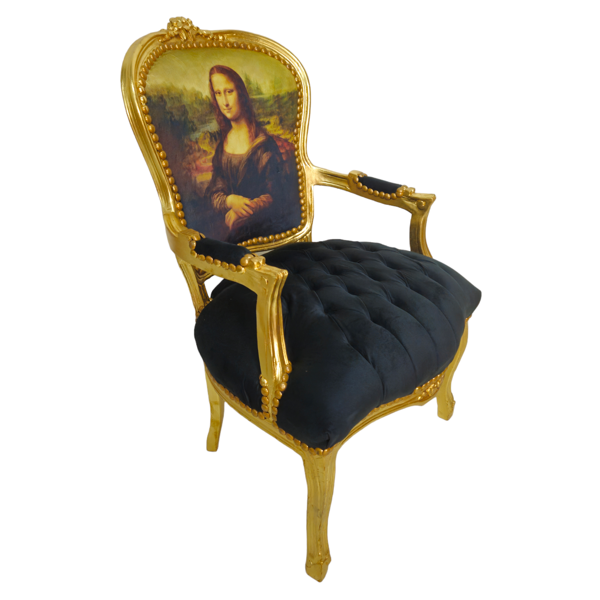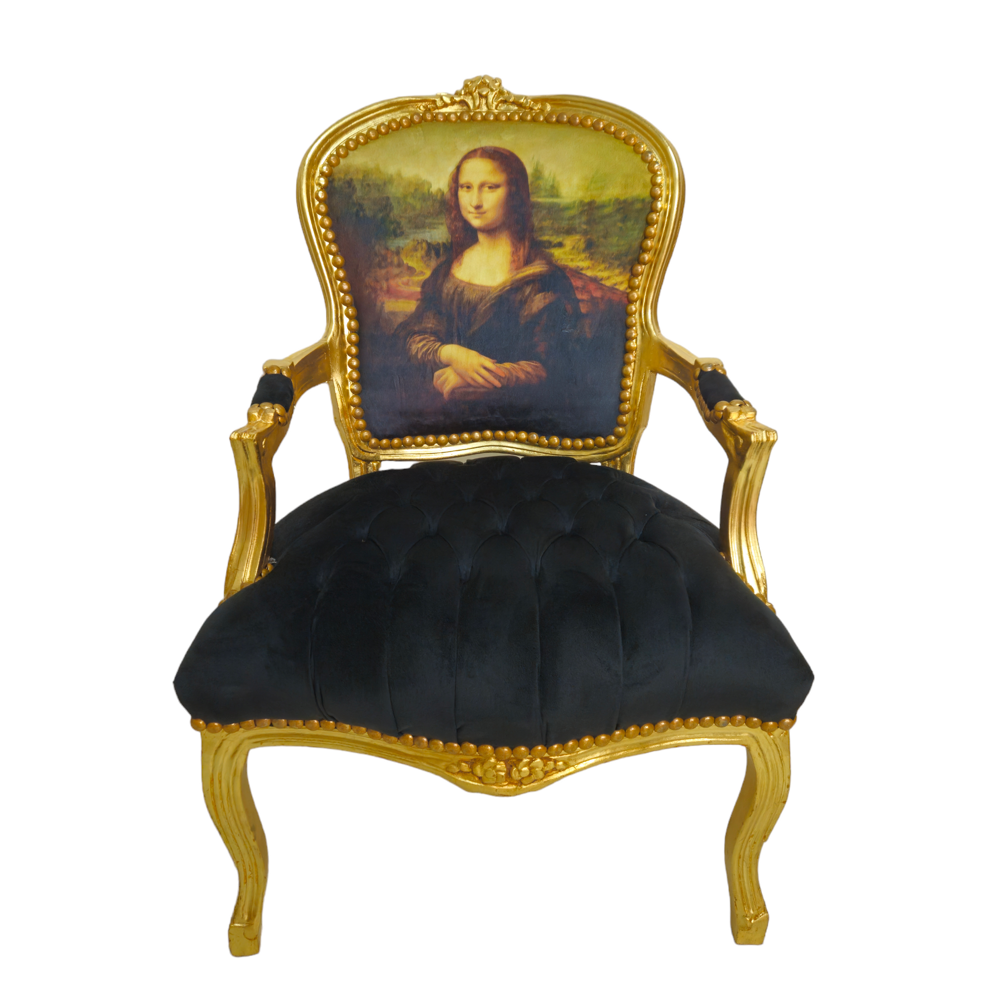 Op zoek naar de perfecte barokke stoel die elegantie en een vleugje renaissance toevoegt aan jouw interieur? Ontdek onze Barok stoeltjes, damesstoelen, bijzetstoelen en salonstoelen met een unieke Mona Lisa print. Deze exclusieve stoelen combineren klassieke barok elementen met een kunstzinnige touch, dankzij de bekleding met de iconische afbeelding van de Mona Lisa.