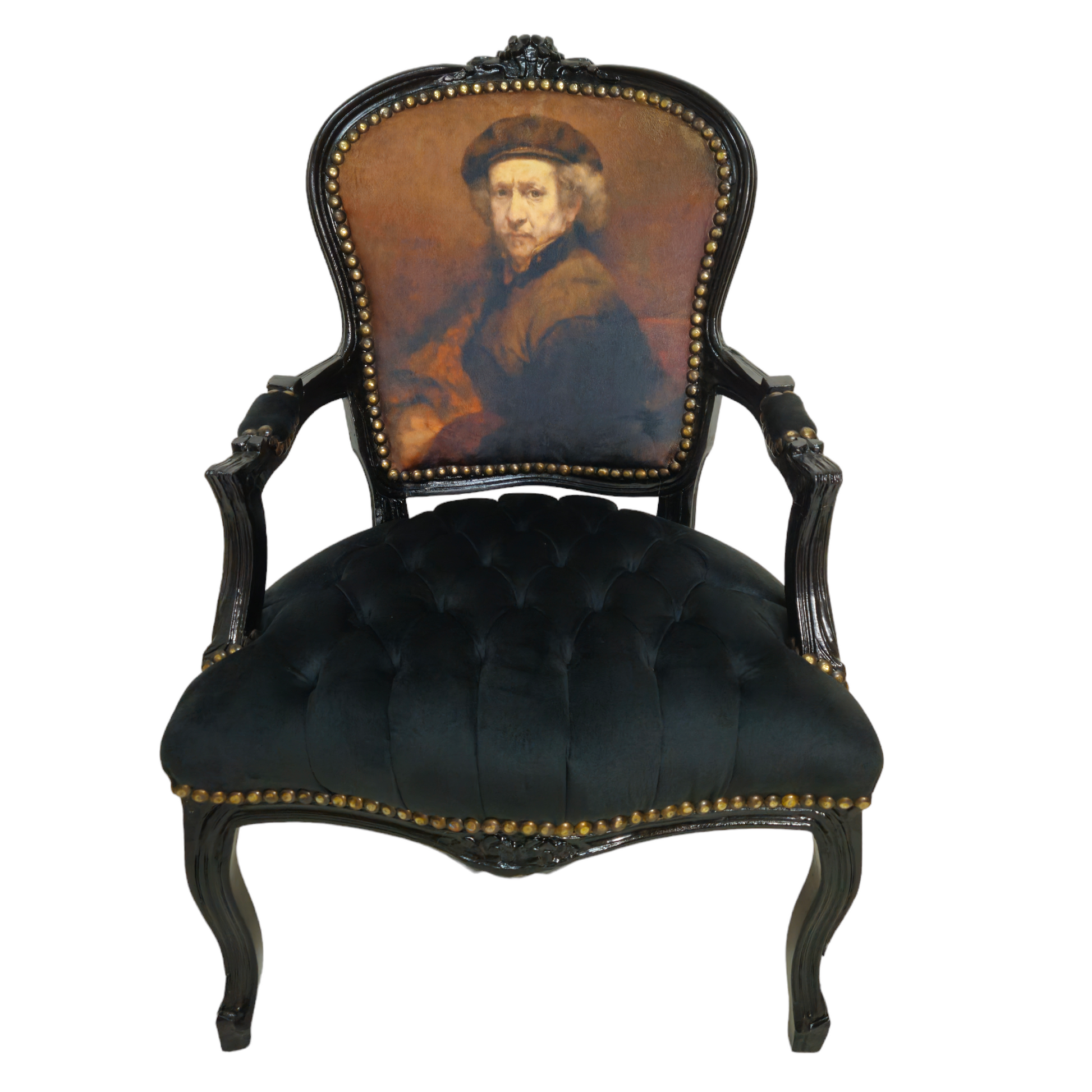 Mis de kans niet om jouw interieur te verfraaien met deze unieke en stijlvolle barokke stoel met Rembrandt print. Bestel nu en voeg een vleugje artistieke elegantie en barokke pracht toe aan jouw huis!